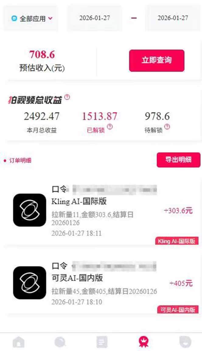项目原理狠简单,我们做的是可灵AI软件拉新,只需要在三大平台发布一条短视频,有人下载就有收益。热门素材直接一键生成,不仅送你软件会员,还有独家工具给你用,纯小白一学就会,手机就能做。像去年我们玩的比较火的即梦AI,玩法类似,但是即梦现在市场接近饱和了,可灵刚开始推,市场很大,而且次日结算!可以说是做拉新里面结算最快的了,平台也成熟,可以放心去推广。按照我们测试的玩法每天爆单不停,一天稳定几百到几千甚至5位数都可能。目前一单最高28块左右,只要发视频就有保底5元起,国内国外都能做,咱们不说多,一天拉10单,至少就是三位数,按照我们的方法,不说日入过万,日入几千都是正常发挥。另外,平台其他赛道的拉新也都免费教你怎么玩,可选性太多了,能坚持做的,我们有好几个都日入过万直接爽爆了!